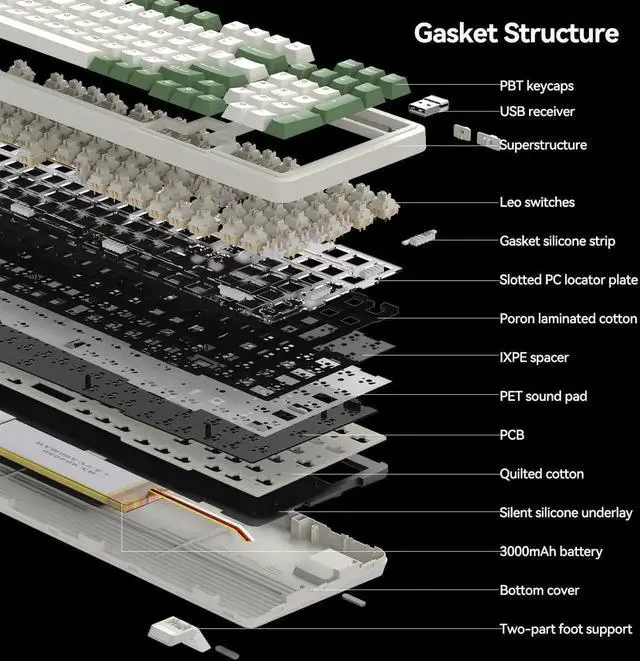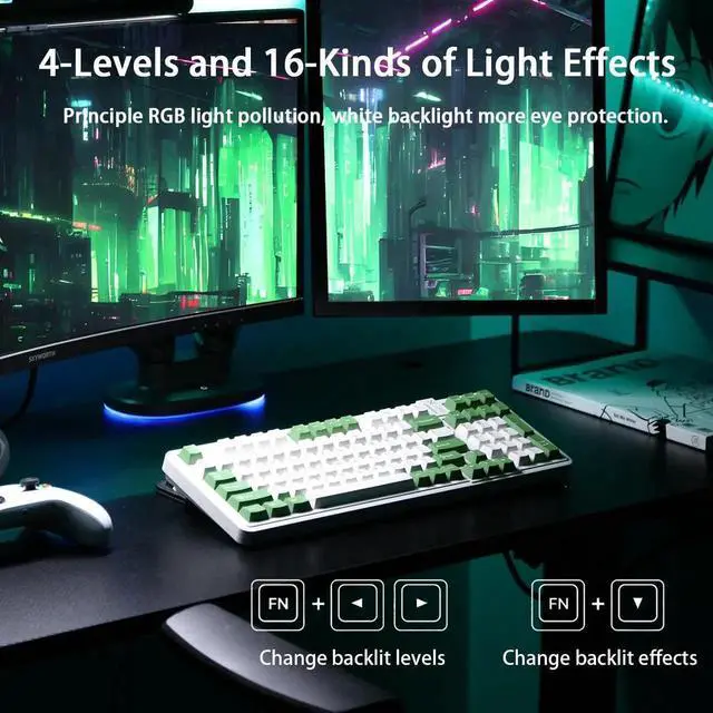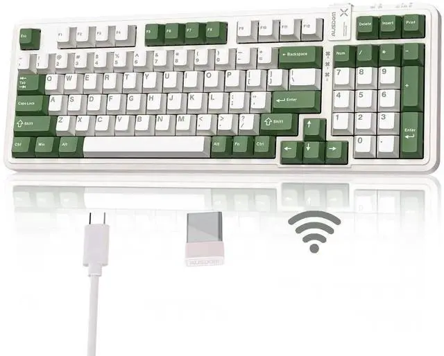 AUSDOM 98Pro Wireless Mechanical Keyboard, Tri-Mode 2.4GHz/Type-C/Bluetooth Keyboard,Hot Swappable Gaming Keyboard with Gasket Structure,Pre-lubed Linear Switches,Backlit Custom Keyboard(Green & White)