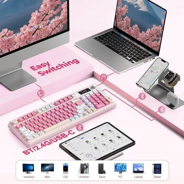 --Tri-Mode Gaming Keyboard -- Connection: Type-C Wired & 2.4G Wireless & BT