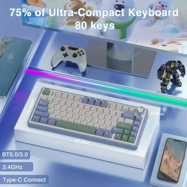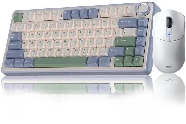 Wireless Keyboard and Mouse Combo, AULA F75 75% Mechanical Keyboard, Gasket Hot Swappable Custom Keyboard+SC580 Wireless Gaming Mouse White