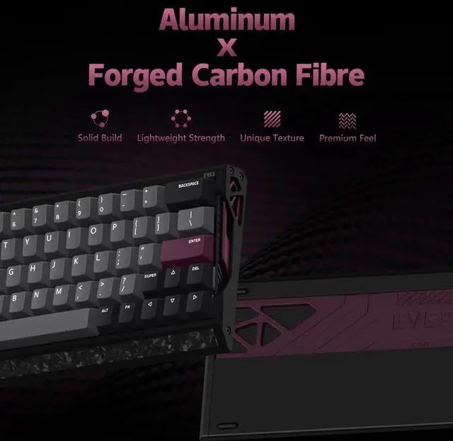IQUNIX EV63 Hall Effect Magnetic Gaming Keyboard 60% ^^ 0.01 mm Rapid Trigger, Adjustable Actuation, 0.125 ms Latency, Hot-Swap, SOCD, RGB, Aluminum with Forged Carbon (Dark Purple)