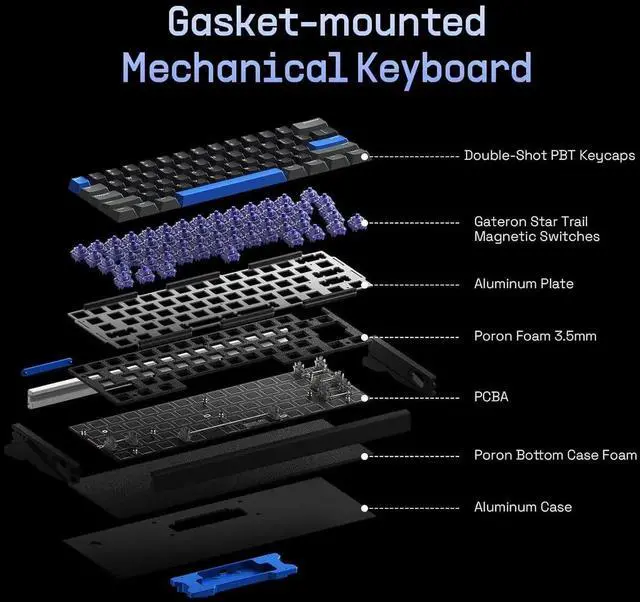 [CNC Aluminum Build & Premium Feel] Built as a premium CNC aluminum keyboard, EZ63/60 offers superior strength and precision.The gasket-mounted structure, double-shot PBT keycaps, and multi-layer Poron foam deliver a softer, more stable typing feel with lasting bounce. Built for intense daily useboth in gaming and typing. Easily customize lighting, macros, and keymaps with IQUNIXs intuitive web-based configuratorno downloads needed.