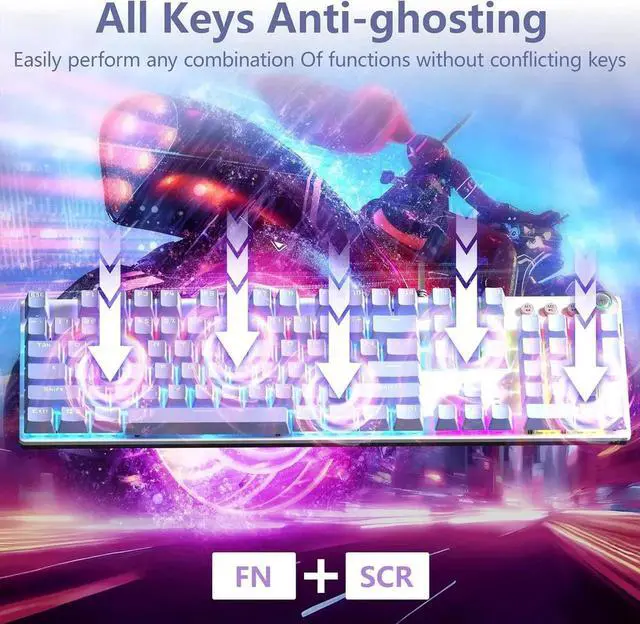Ergonomics & Full Keys Anti-Ghosting : Our ergonomic keyboards come with two kickstands with an adjustable angle of up to 7° to ensure your wrists and arms are in the most natural position. The all full keys anti-ghosting keyboard allows for accurate response to every keystroke, making it comfortable to use for extended periods of time, which improves your gaming experience and productivity.