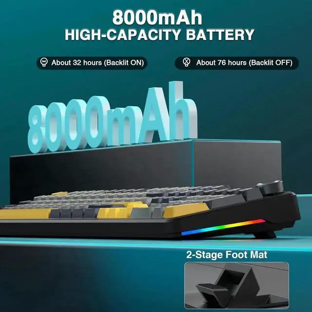 Hot-swappable Custom Keyboard: The F108 Pro wireless gaming keyboard comes with a hot-swappable base that is compatible with 3-pin or 5-pin switches. Without the soldering process, users can easily replace switches and keycaps to customize their keying experience (keycap/switch puller is included in the package). Equipped with pre-lubricated stabilizers and switches, the creamy keyboard bring smooth typing feeling and pleasant creamy mechanical sound, providing fast response for exciting games