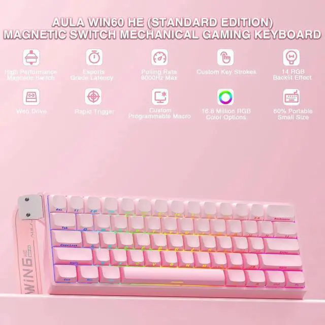 High-Performance Magnetic Switch Keyboard: The AULA Win60 HE 60% keyboard is equipped with advanced, self-developed magnetic switches and a lightweight, non-memory-consuming driver, delivering polling rates of up to 8000Hz for ultra-fast response times. Gain a competitive edge in gameplay with precise and reliable performance ^^ Optimized for