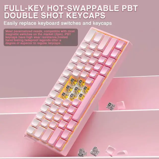 Dynamic RGB Lighting: The Win60 HE features a lower light position design that illuminates Side-Printed PBT keycaps, along with 16.8 million customizable RGB colors. Create stunning lighting effects to match your setup and elevate your gaming atmosphere ^^ Effortless Customization with