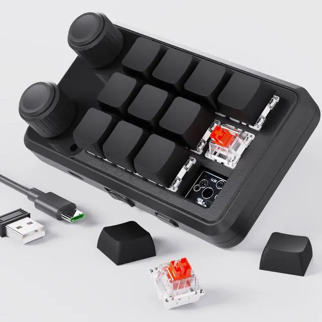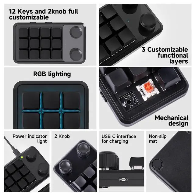 Custom Settings: Download the configuration software on our website and adjust the hotkeys and macros to your needs - make your work and play more efficient! Software: https://sikaicase.com/blogs/support/setting-for-software Versatile Connection: This mini keyboard connects via 2.4G receiver, BT5.0 or USB-C cable, and its 300mAh battery lasts up to 2 weeks - use whichever method works best for you! RGB lighting: Choose from 7 colours and 5 lighting modes to customise the look of your keyboard - make your desktop shine with your style! (USB-C connection required) Layer Switching: Switch between different layers for different functions and store different settings for different software and games, make your keyboard fit your needs! Ergonomic Design: This mini keyboard has a rotary knob for volume adjustment and music control, and its compact size makes it easy to carry, use this keyboard anywhere you want!