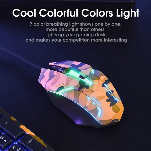 Gaming mouse has 3 levels of adjustable DPI: 800, 1200, 1600; 7-color LED breathing light creates a dreamy and futuristic gaming atmosphere for you.
