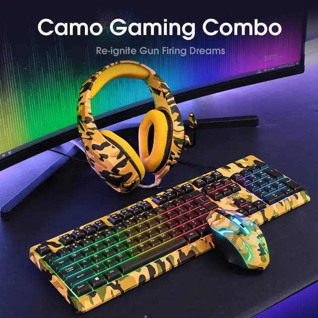 This gaming keyboard mouse headset combo has a uniform and cool camouflage look, they are the best paint job for gaming, and the camouflage gaming set will give you an immersive feeling when you are in battle.