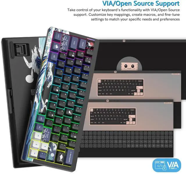 The keyboard uses QMK/VIA editing software. You can fully customize the keyboard key functions, you can have an interesting keyboard that meets your own habits.(Make sure you have read and follow the User Guide before opening this)
