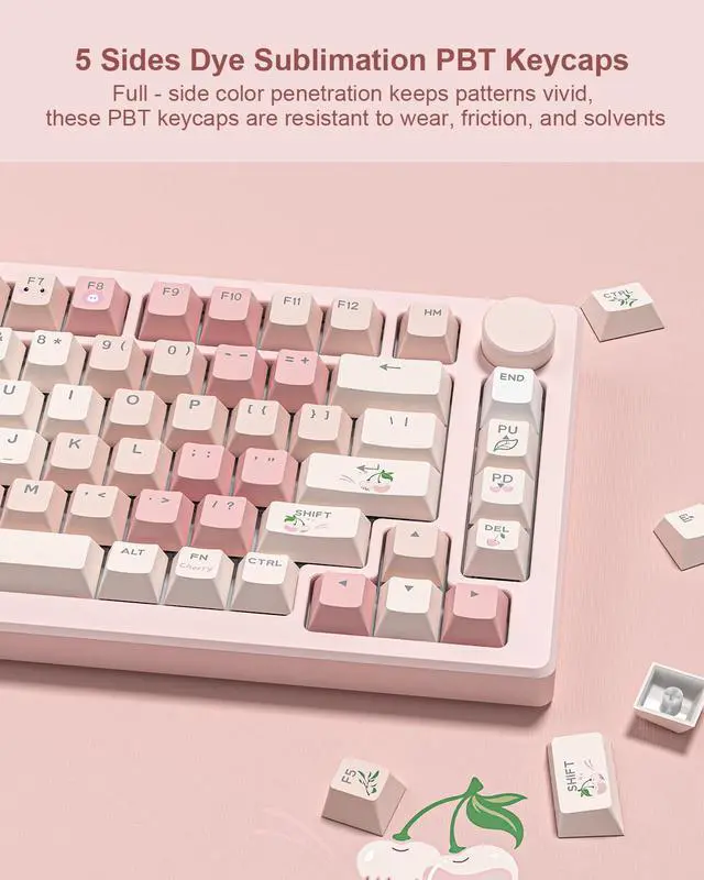 Imagine your keyboard's backlight glowing through crisp, adorable fonts – that's the magic of our 5-sided dye-sublimation design!