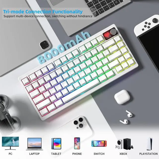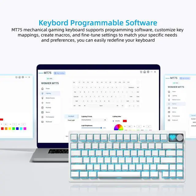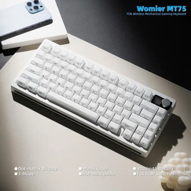 Merchant VideoMT75 75% Wireless Mechanical Gaming Keyboard, Keyboard with custom dot-matrix display is interesting and beautiful, which will bring you wireless fun. Practical compact layout makes the desktop simple, where you' re working, gaming, or creating, this versatile keyboard adaptations to all your needs