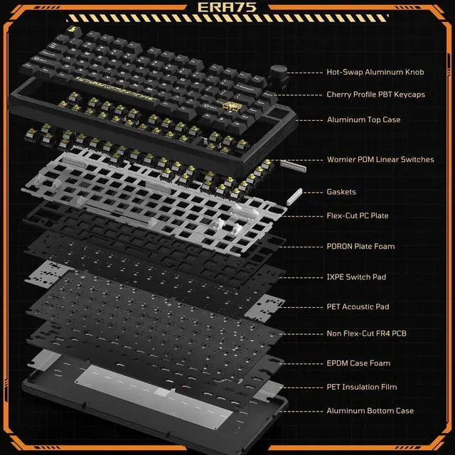 ERA75 supports VIA for easy key remapping, macros, and lighting, directly in your browser, no software needed. For deeper customization, we also provide open-source firmware, giving you full control to modify and personalize your keyboard.
