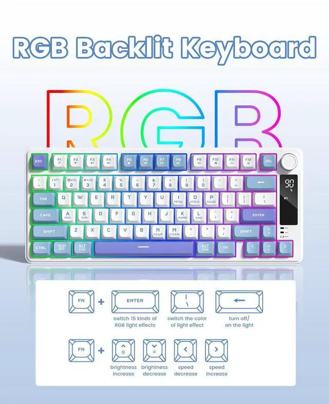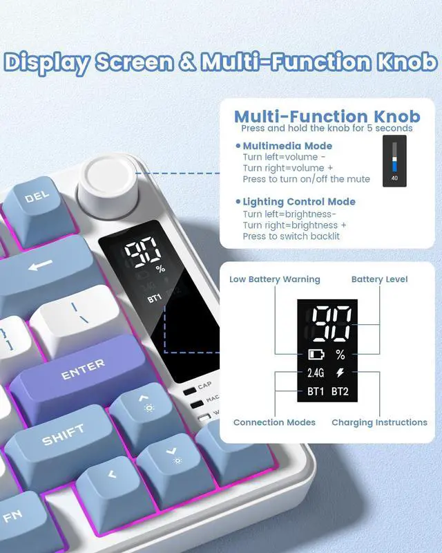 Exquisite Packaging: DK75 Blue&Purple Keyboard; USB C Cable; 2.4Ghz Dongle; User manuals