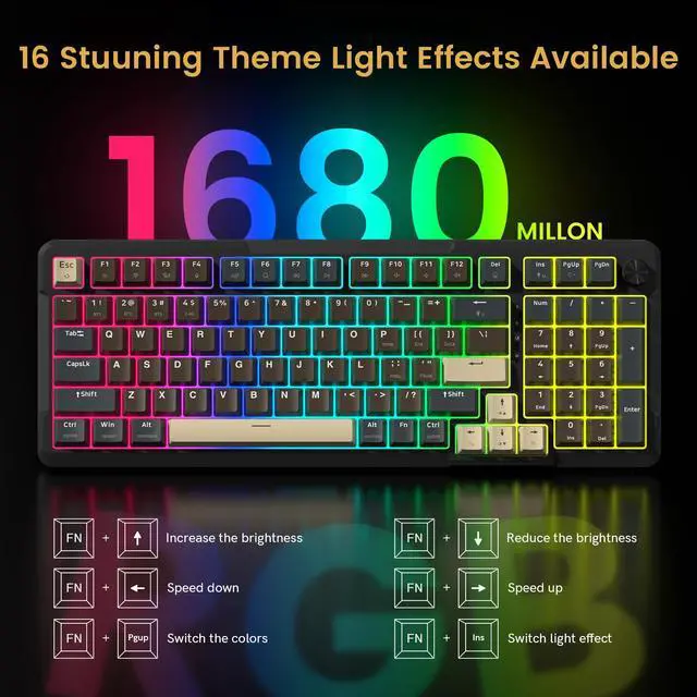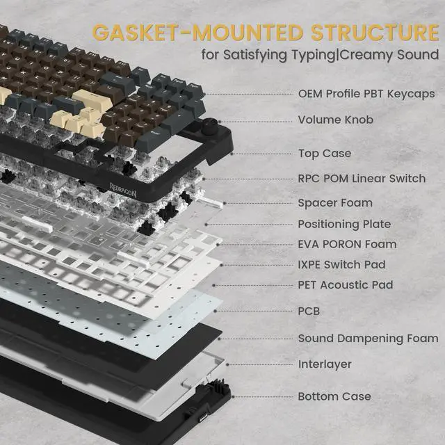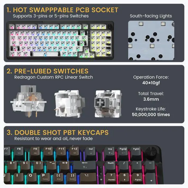 Redragon K742 Wireless Mechanical Gaming Keyboard with Knob, Bluetooth 5.0/2.4GHz/USB C Wired Creamy Keyboard with Number Pad for PC Computer, RGB Backlits, Hot Swappale Linear Switc