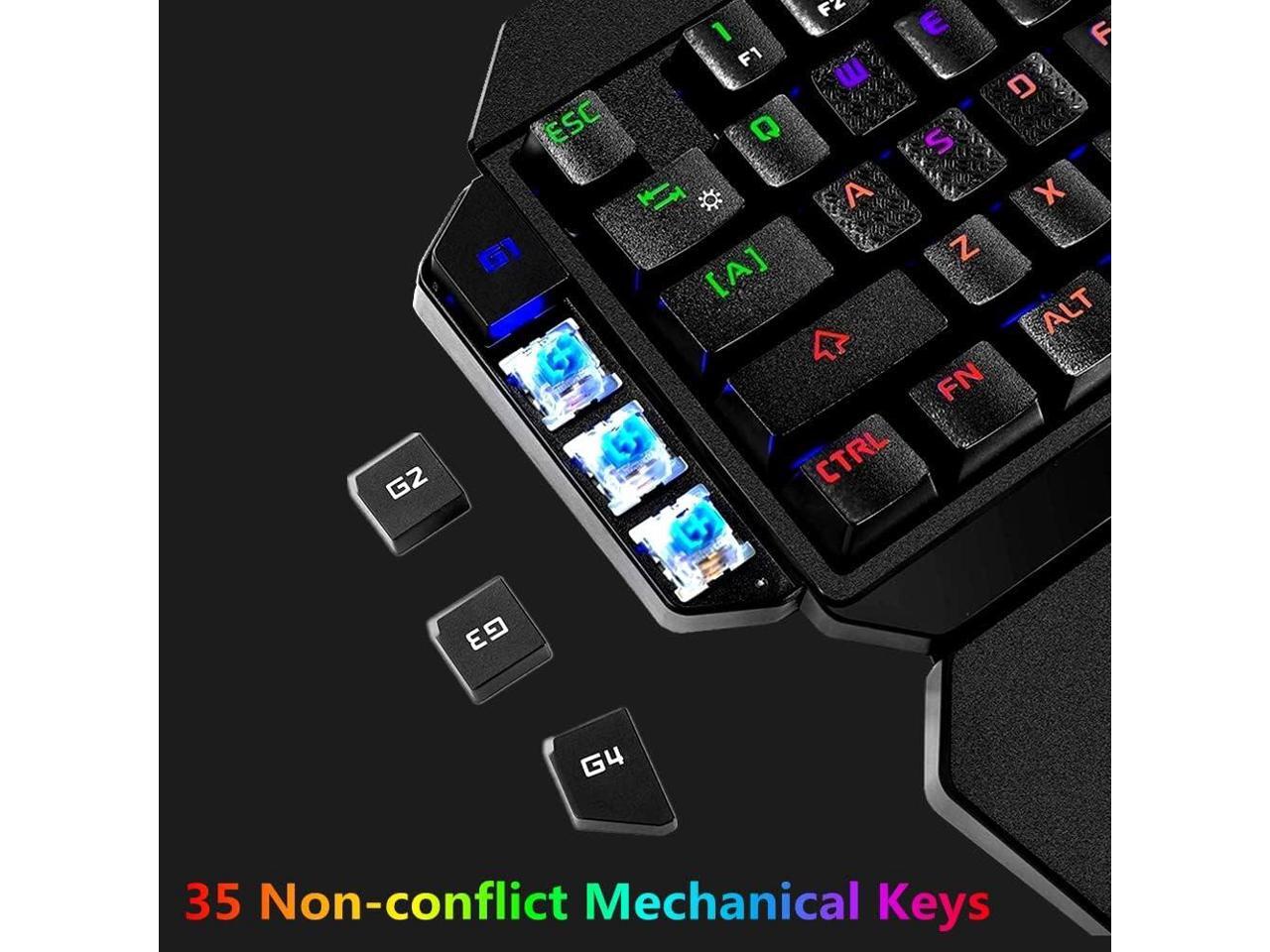 - Cakce RGB One Handed Mechanical Gaming Keyboard Colorful Backlit Professional Gaming Keyboard with Wrist Rest Support USB Wired Single Hand Mechanical Keyboard for Game