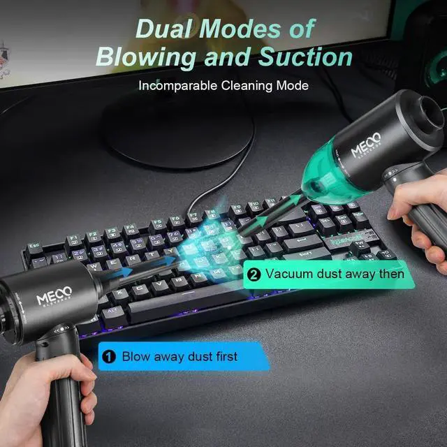 Electric Compressed Air Duster & Vacuum, MECO Electric Air Blower, 4 in 1 Function Powerful 3-Gear to 90000RPM/12000PA Keyboard Cleaner, Rechargeable Cordless Air Duster for Computer/Car/Pet Hair