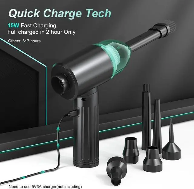 Fast Charging & High ReusabilitySupports type-C fast charging and QC technology, reducing charging time to 2 hours. Comparing to compressed air cans, its way more eco-friendly and efficient. The built-in 7500mAh batteries can be for thousands of re-uses. Save your money and energy at the same time with this perfect replacement.