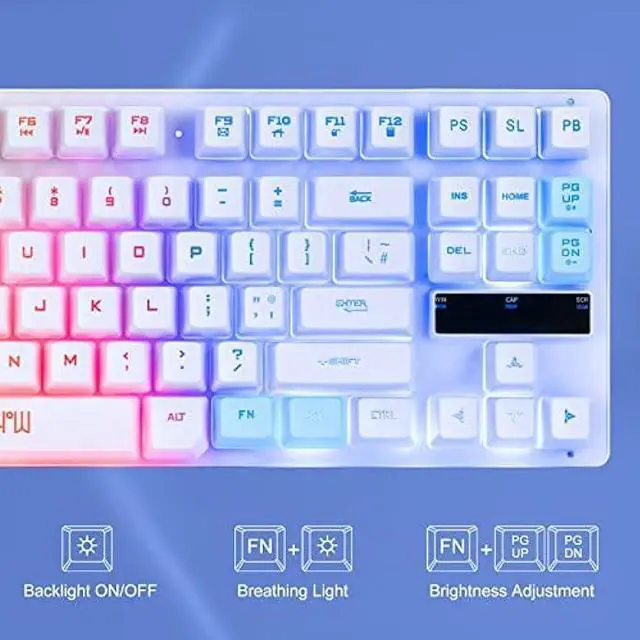 TKL 87 KEYS COMPACT LAYOOUT87 keys white keyboard, no number keys design, free up desk space without sacrificing performance and comfort during your any gaming sessions.