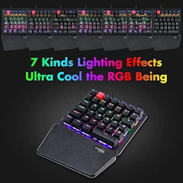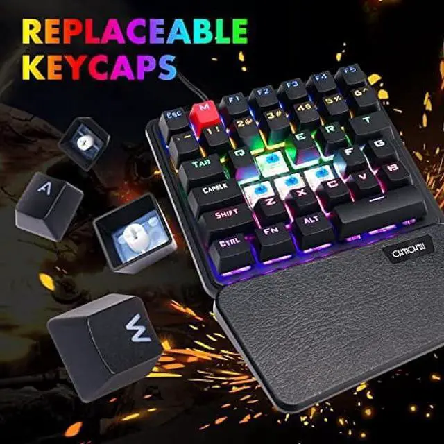 Mini and Clicky Tactile -- Cut the mostly keys on normal keyboard, gets rid of the big and heavy impression, the one hand gaming keyboard just has 36 most useful keys to games. No worry to error handle during playing, the classical mechanical blue switchs' audible clicky with clear tactile feedback of CHONCHOW one hand gaming keyboard support you to control the battlefield and to be the mvp.