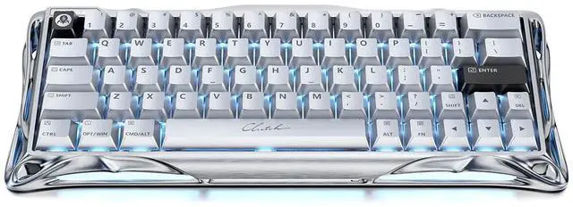 GravaStar Magnetic Switch Gaming Keyboard , UFO Axis, 8K Polling Rate, Full Aluminum Frame, RGB Backlit, Wired Single-Mode Mechanical Keyboard,V60 PRO Chrome Silver