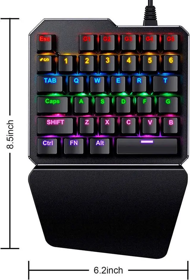 IXJYLCPC One Handed Mechanical Gaming Keyboard , Mechanical Portable RGB LED Backlit Game Keyboard with Keypad for LOL/PUBG/Wow/Dota/OW/Fps Game, Blue Switches, 35 Keys