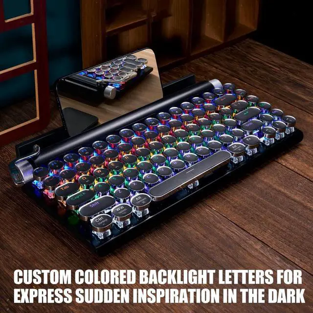 Built-in hot swap blue switch: The classic typewriter style is integrate with premium hot swappable blue switch keyboard technology. Accelerate the speed of typing and enjoy the " Click" feeling by the old royal typewriter