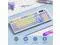 • Custom Keyboard: All keys on this wireless keyboard support macro customization, which allows you to record and edit macros to program a series of complex actions into a key, useful in very exciting real-time games. Bluetooth keyboard is equipped with dual-mode rotary knob for easy adjustment of volume, audio and lighting effects. Enjoy the fascination of technology and a new experience with the purple membrane keyboard