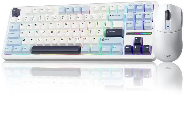 Wireless Keyboard and Mouse Combo, F87 Wireless Mechanical Keyboard,75% TKL Gasket Custom Hot Swappable Keyboard+SC580 Wireless Gaming Mouse White