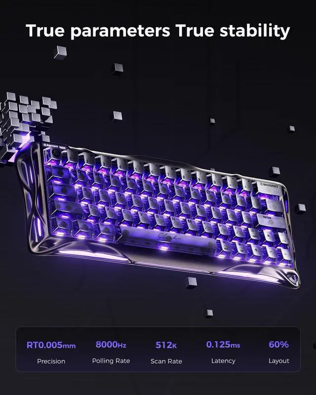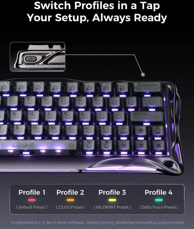 The keyboard delivers a true 8000Hz polling rate, reporting inputs up to 8× faster than standard 1000Hz gaming keyboards. Every keystroke is registered with ultra-low latency for real-time response in high-speed gameplay.