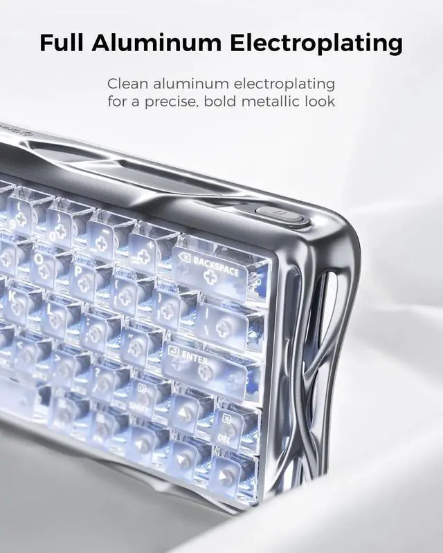 The keyboard features a CNC-machined 6063 aluminum body, a compact 60% QWERTY layout, and frosted/translucent PBT keycaps. It also supports hot-swappable Hall Effect switches and uses a detachable USB-C wired connection, compatible with Windows, macOS, and supported gaming consoles.