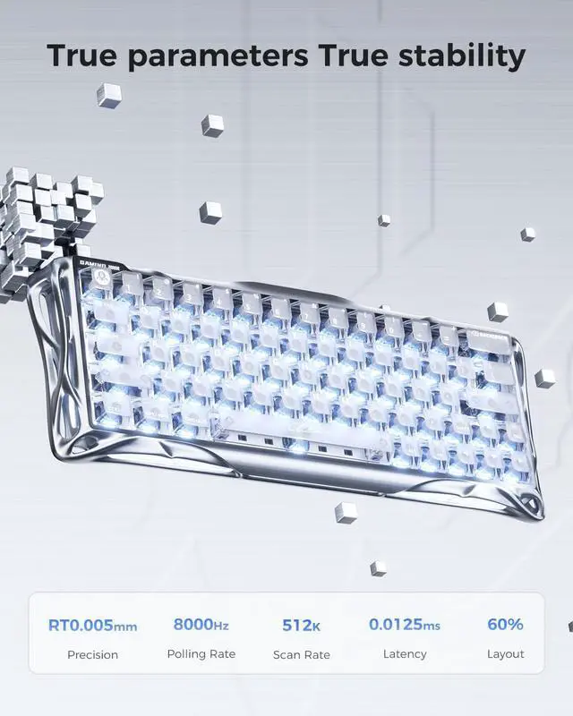 The keyboard delivers a true 8000Hz polling rate, reporting inputs up to 8× faster than standard 1000Hz gaming keyboards. Every keystroke is registered with ultra-low latency for real-time response in high-speed gameplay.