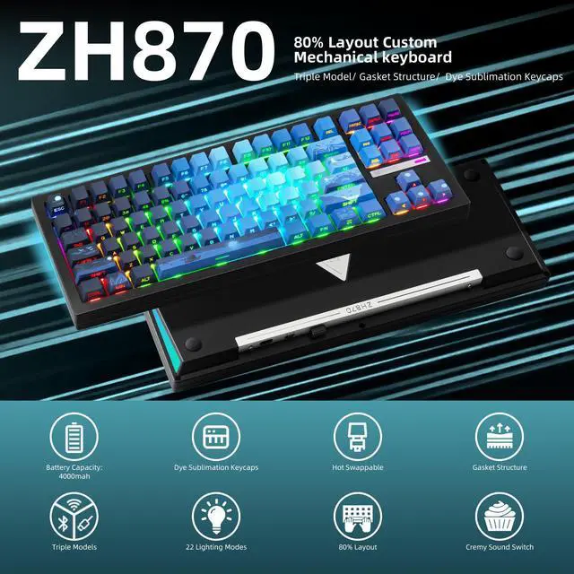 [Satisfying Sound with Creamy Linear Switches]Equipped with factory-lubed creamy linear switches and gasket mount, ZH870 delivers soft keystrokes with audible, crisp feedback. Great for users who enjoy typing rhythm and key soundnot intended for ultra-quiet setups.