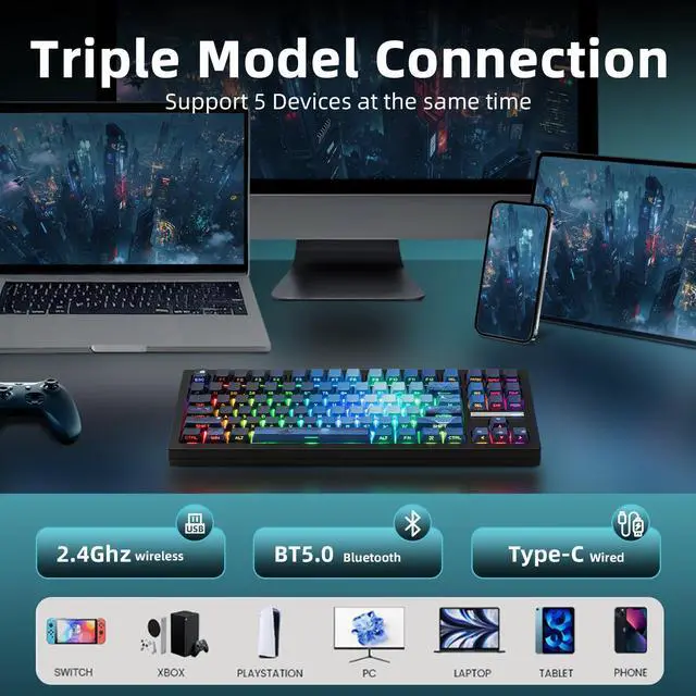 [80% Layout for Work & Play Efficiency]This compact 80% keyboard keeps essential keysF-row, arrows, and navigation clusterideal for gamers who type often or professionals who need space-saving performance without losing functionality