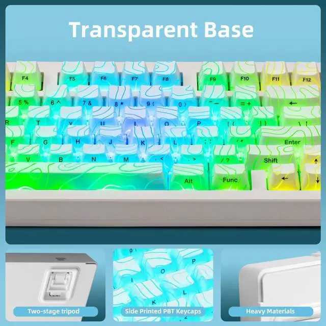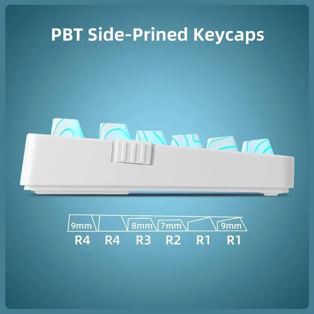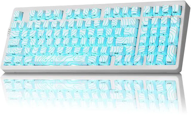 [IMD PBT Keycaps with Shine-Through Legends]Made from high-purity PBT using IMD Technology, these keycaps resist shine, fading, and long-term wear. The white topographic theme pattern glows beautifully under RGB, while side-printed legends are molded, not printedoffering enhanced durability and clear shine-through effects without obstruction.