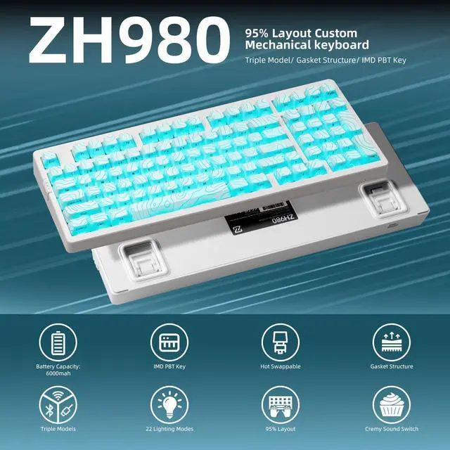 ZORNHER ZH980 Wireless Mechanical Gaming Keyboard,95% White Custom Creamy Keyboard with Number Pad,Shine Though IMD PBT Keycaps,Pre-lubed Linear Switches,Hot-Swappable,RGB Backlit