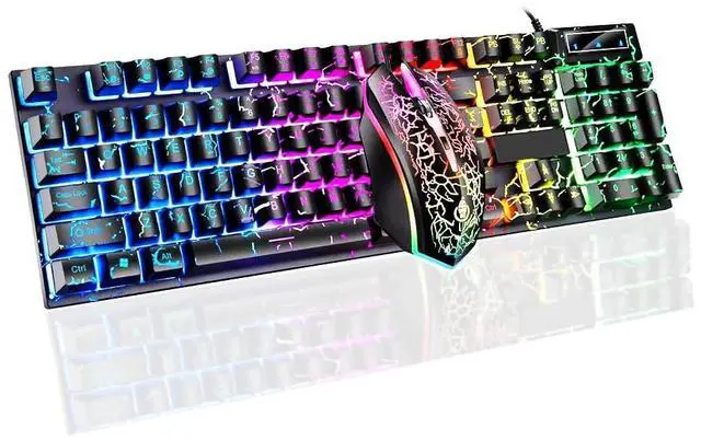 Wired Crack Rainbow Gaming Keyboard And Mouse Combo, 104 Keys Light Up Mechanical Feeling Computer Keyboard, Wired Gaming Keyboard And Mouse For PC MAC Xbox Gamer