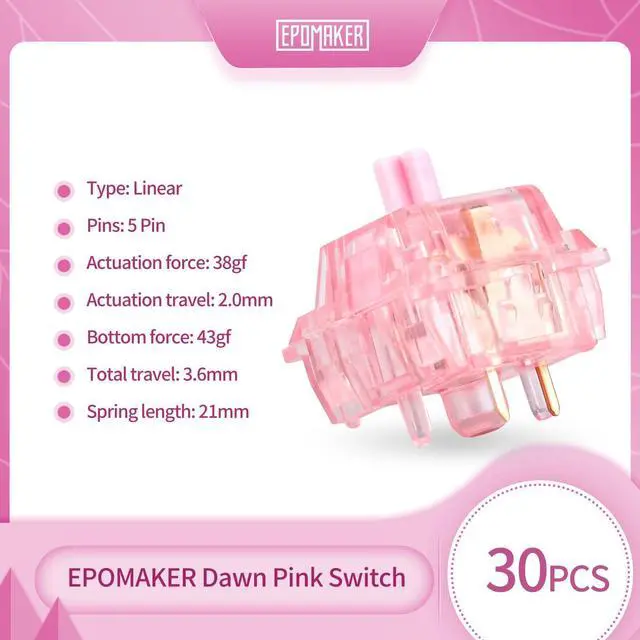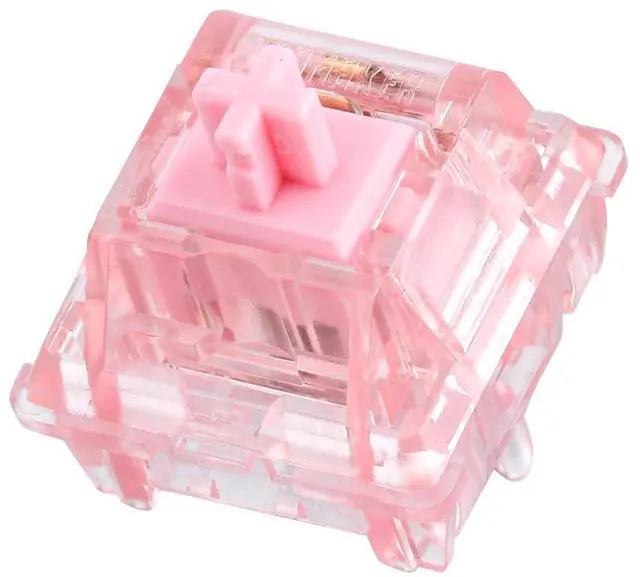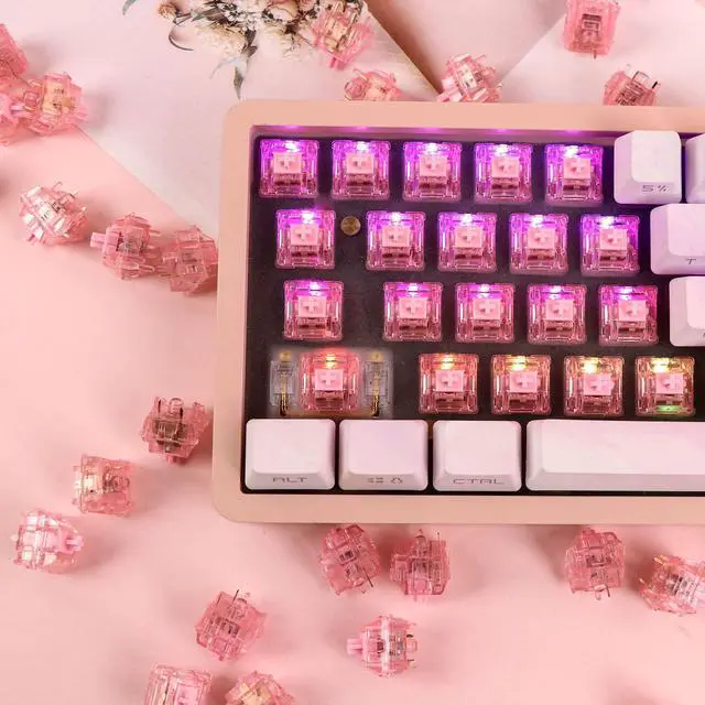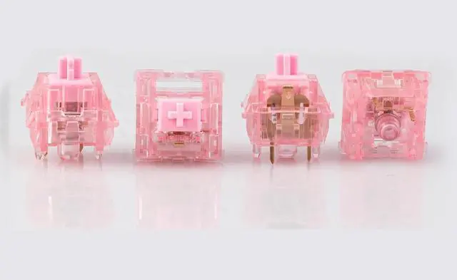 Equipped with LED slots for modification, the backlight can be shine-through even with PBT housings in the EPOMAKER Dawn Pink switches.