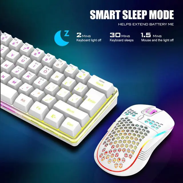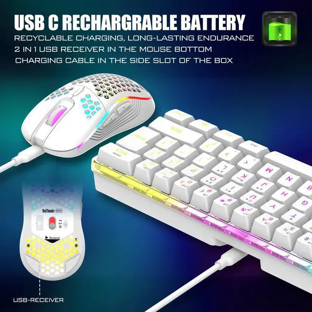 The wireless keyboard has been designed with a unique built-in transparency board, which will enhance the overall gaming lighting atmosphere.