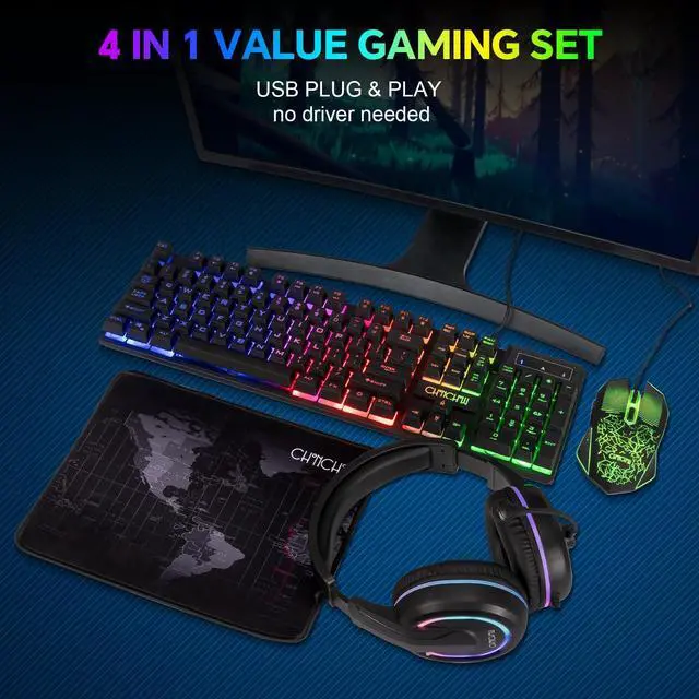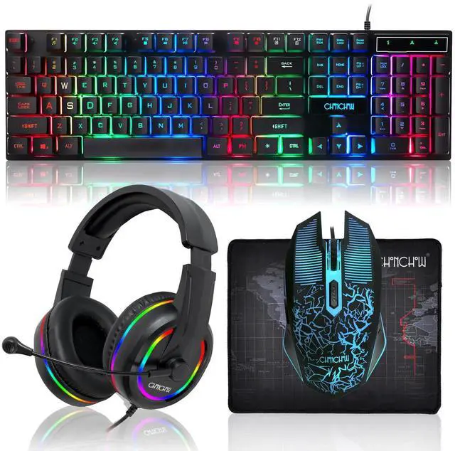 LED Gaming Keyboard Mouse Headset Mousepad Set for Xbox PS4 PS5 PC laptop Gamer
