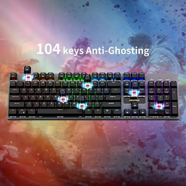 The Newmen GM325Pro mechanical keyboard combines durability, style, and performance in a full size 104key design. Featuring a metal top plate, hotswappable linear red switches, and doubleshot keycaps, it offers smooth keystrokes and longlasting reliability. Enjoy 13 rainbow LED effects with RGB sideedge lighting, detachable USB connectivity, fullkey rollover, and FN shortcuts. Custom software lets you remap keys, create macros, and personalize lighting, making this wired gaming keyboard perfect for both work and play.