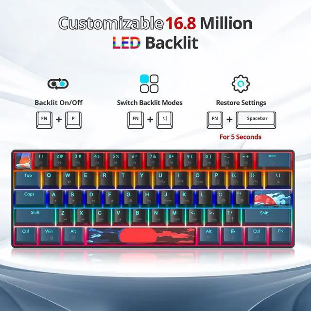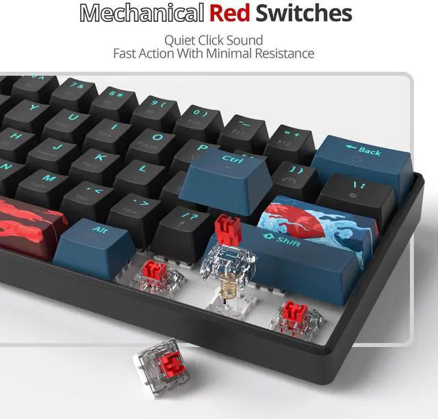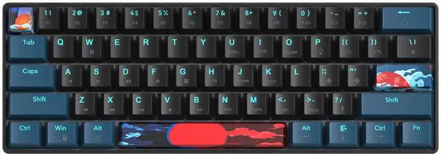 GS61 is a ultra-compact layout keyboard with 61 keys. Concentrated all the key functions you need in minimalist design. Save more space for your mouse moving and neat the desktop.