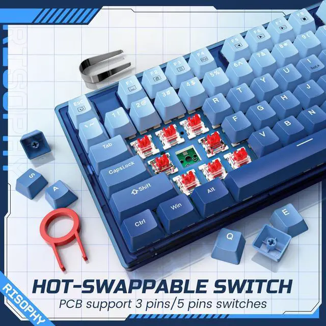 Are you an experienced keyboard enthusiast looking for a fully functional and enjoyable entry-level keyboard? Then the newly launched Gradient Blue 75% Compact Layout Mechanical Keyboard might be the perfect match for you. The stylish and modern gradient blue exterior adds a touch of elegance to your workspace. Unleash your creativity with programmable macros, allowing you to effortlessly control the digital world.