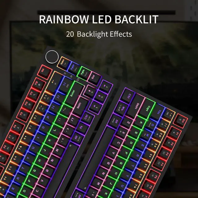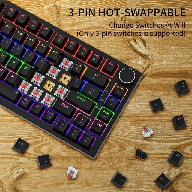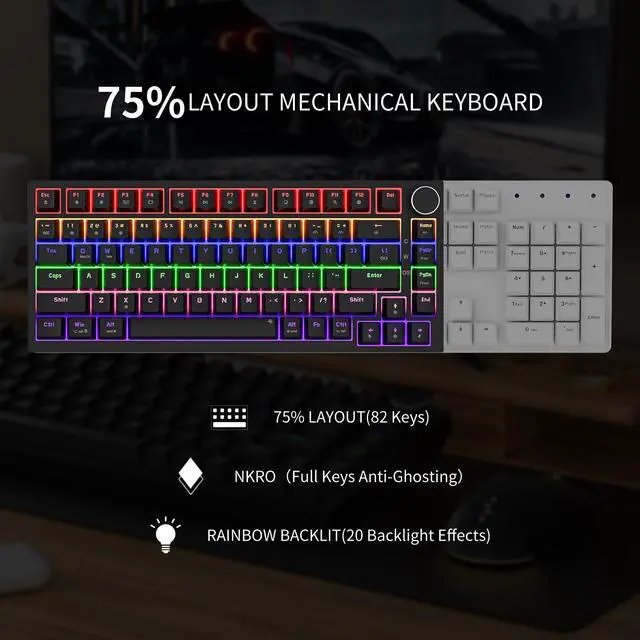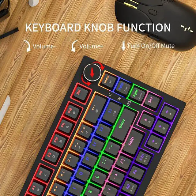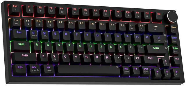 Newmen GM326 75% Percent Mechanical Keyboard,Wired 82 Keys Gasket Mini Hot Swappable Backlit Gaming Mechanical Keyboard with Knob,NKRO Compact Gaming Keyboard for PC Win Mac,Black Keycaps,Red Switch
