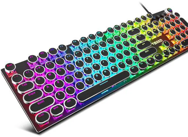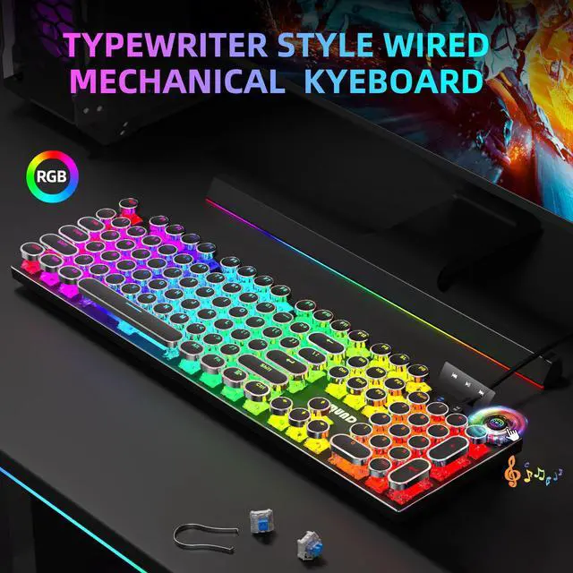 RETRO TYPEWRITER STYLE & MULTI-FUNCTION CONTROL KNOB: Full-size vintage design blends nostalgic aesthetics with practicality, perfect for desk setup lovers. The knob enables one-touch volume adjustment, media playback control, and seamless switching between 22 dynamic RGB effectsno interruption during intense gaming or focused work.