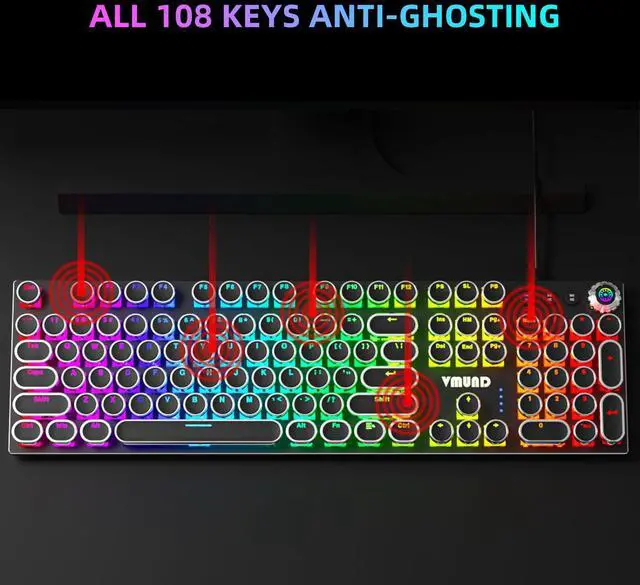 108 ANTI-GHOSTING TACTILE BLUE SWITCHES: Advanced blue switches deliver crisp click sounds and precise tactile feedback, responsive to fast keystrokes. 108-key anti-ghosting technology ensures no missed inputs when pressing multiple keys simultaneously, tailored for competitive gaming.
