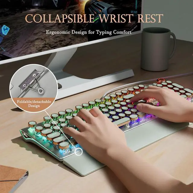 - Shine-through keycaps make typing easy even in low light, and you can swap between vintage and standard keycaps for a personalized typing experience.