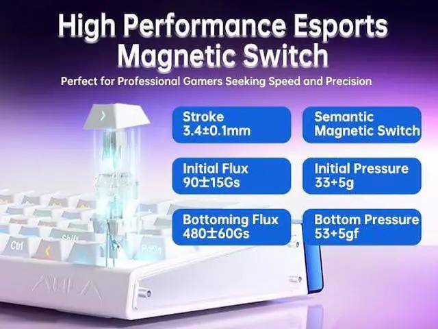 Powerful Magnetic Keyboard with Unparalleled Precision and Control,and the custom keycap features advanced pioneering magnetic shaft sound package technology for the first time.