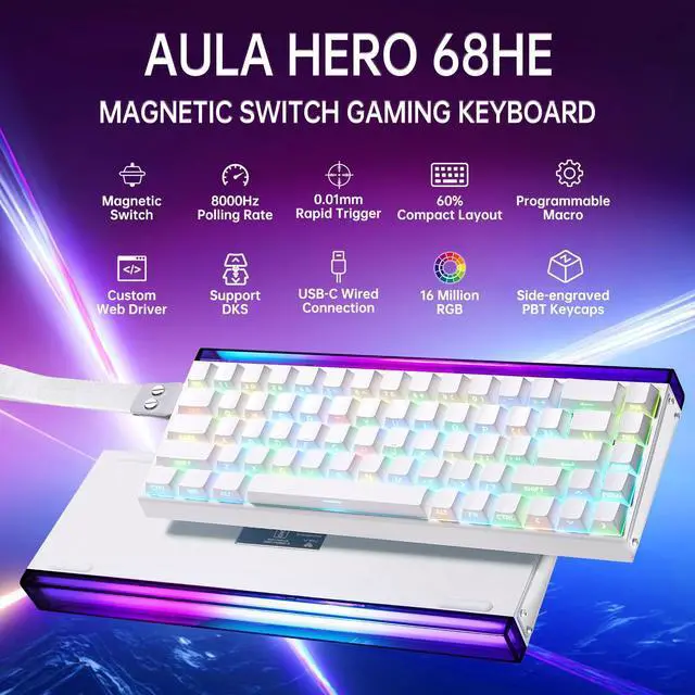 AULA Hero 68he Hall Effect Keyboard: 60% Keyboard Compact Layout Gaming/Office