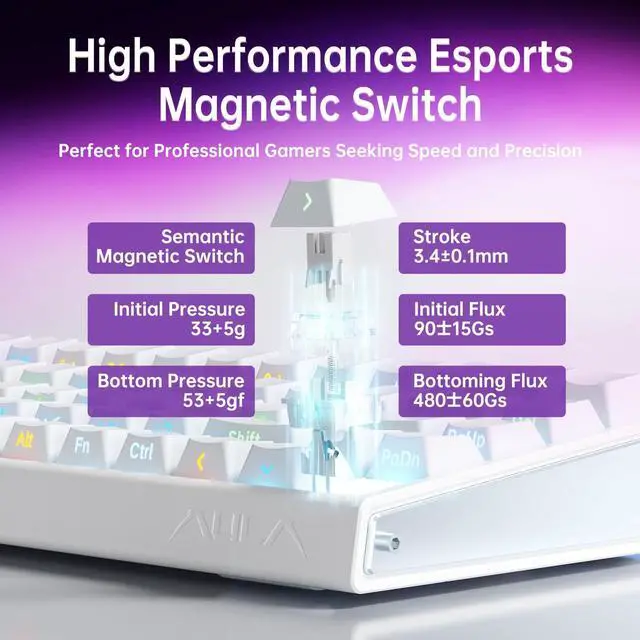 Powerful Magnetic Keyboard with Unparalleled Precision and Control,and the custom keycap features advanced pioneering magnetic shaft sound package technology for the first time.