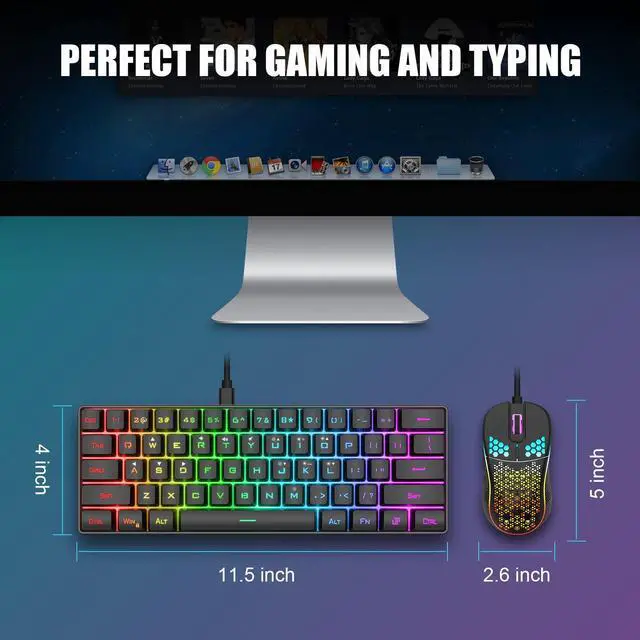 11.5 X 3.9 inches mini compact size,you can use our 60% mechanical feeling keyboard at home, at the company, and on the travel, because its size is very convenient to carry and use with stable.